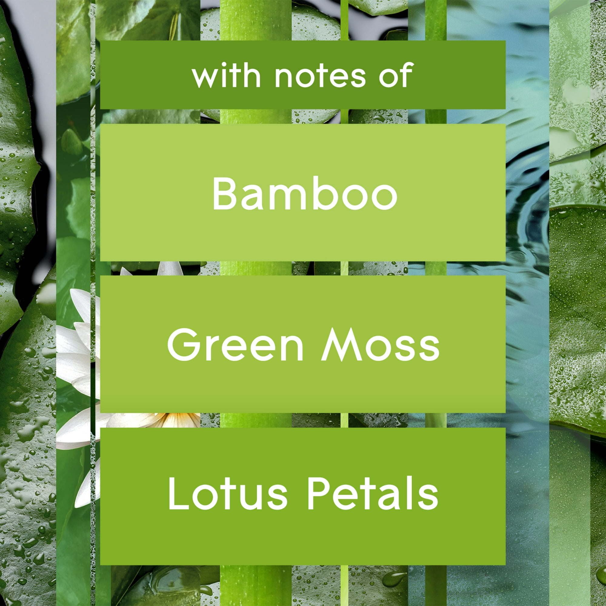 Surround yourself with scent and a soft glow with the Glade Bamboo & Waterlily Bliss candle which features calming notes of bamboo, green moss and lotus petals